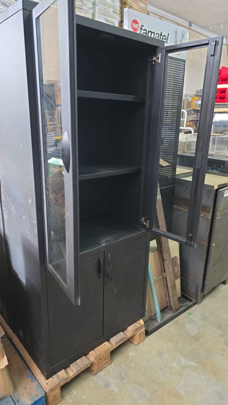 ARMARIO METÁLICO CON CRISTAL CON LLAVE 180x80x45cm