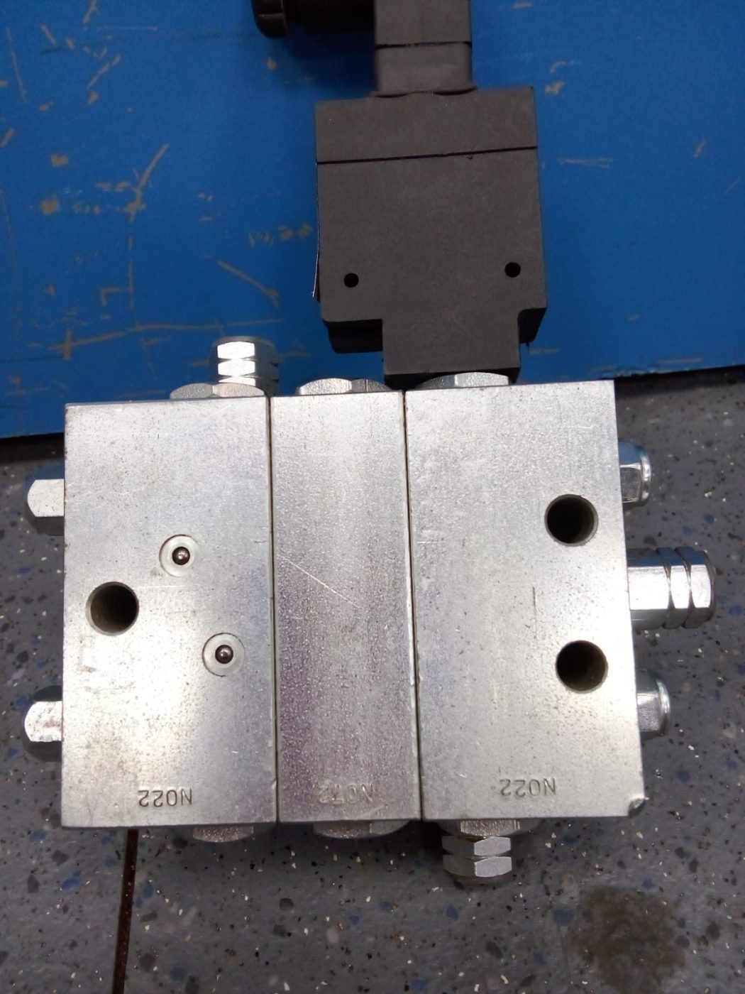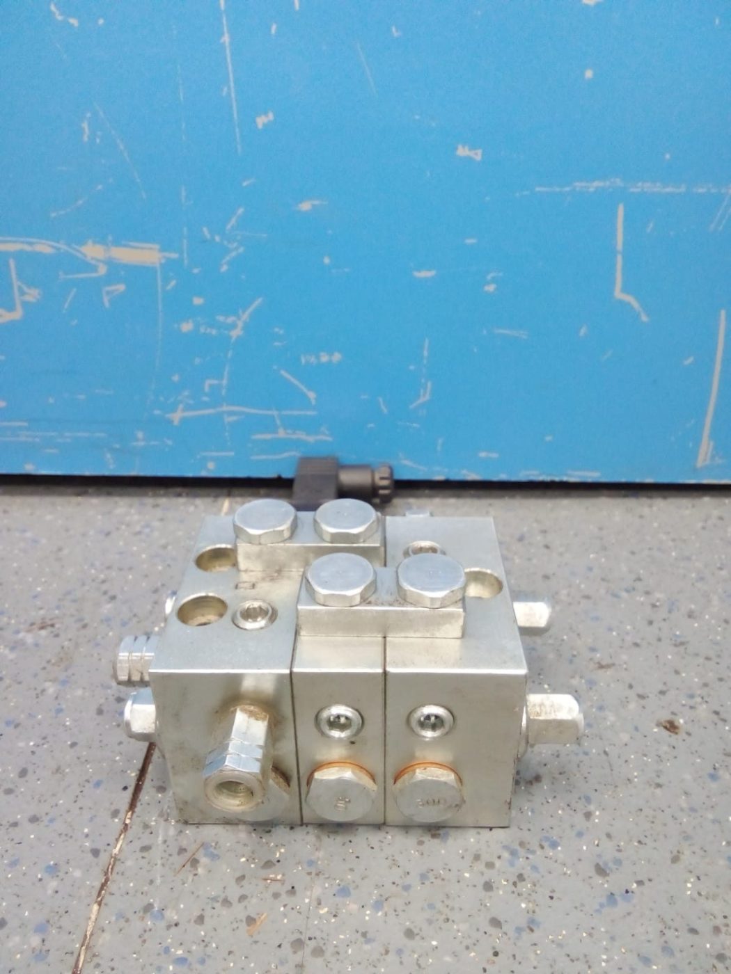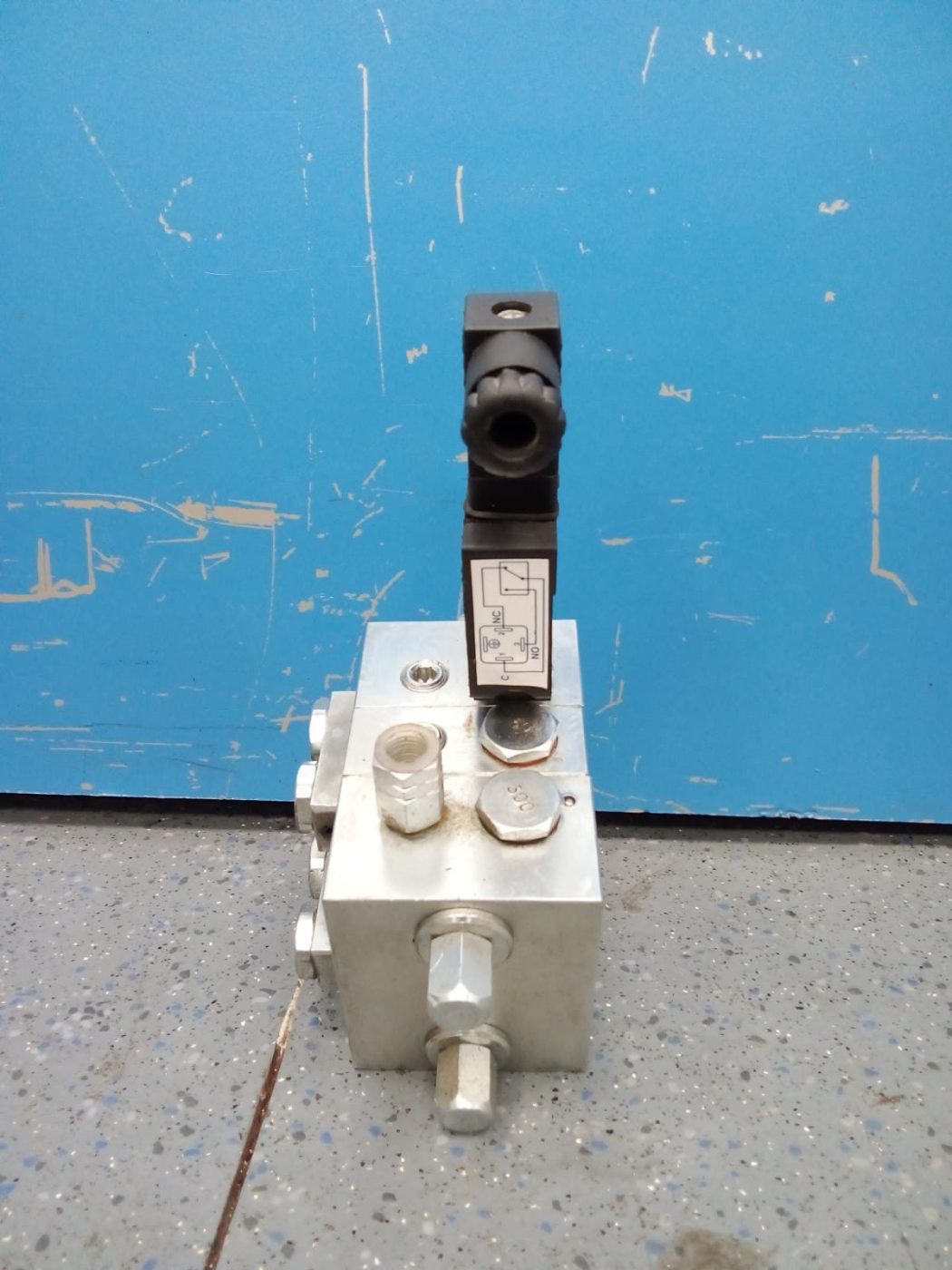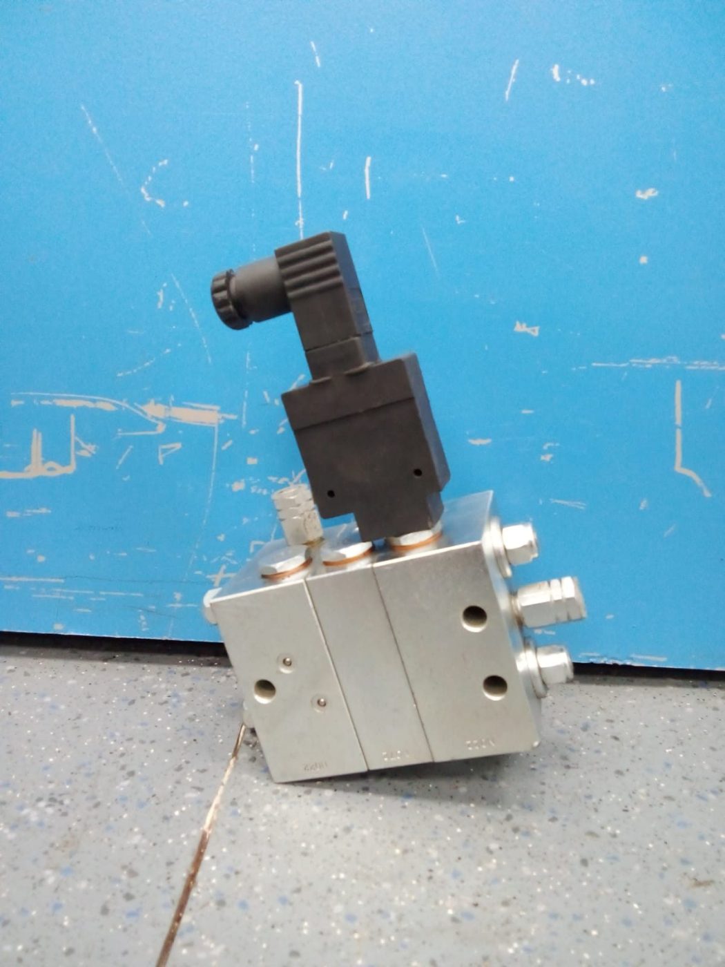 Conjunto industrial formado por un bloque de válvula metálico con múltiples puertos y un microrruptor eléctrico integrado de la marca ILC, diseñado para el control y supervisión de sistemas hidráulicos o neumáticos. Este tipo de conjunto se utiliza para detectar posiciones, presiones o estados del sistema y transmitir la señal a un circuito eléctrico de control.
