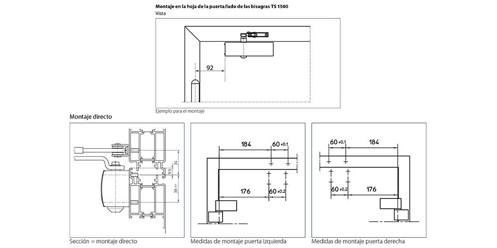 -Instalación flexible: brazo de piñón y cremallera, con opción de retención (hold-open).