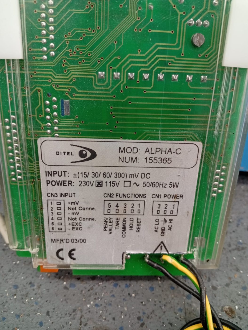 Indicador de panel digital DITEL ALPHA-C para medición de fuerza, par, peso o presión. Usado en bancos de ensayo, prensas, células de carga y control de procesos.