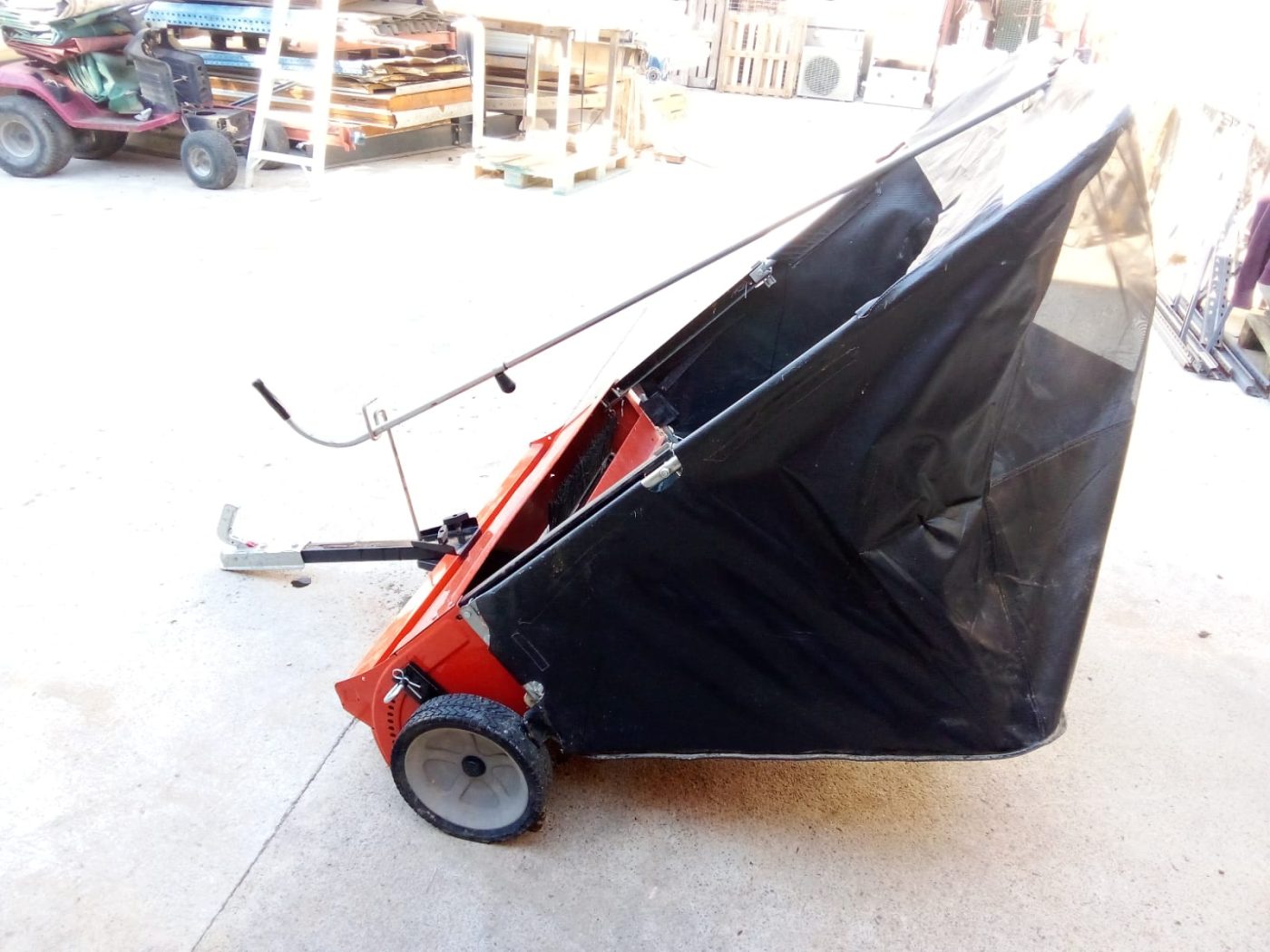 El sistema de cepillos, combinado con sus ruedas de 25 cm de diámetro, asegura una tracción óptima y una limpieza uniforme incluso en terrenos irregulares. Su estructura de acero pintado en polvo aporta resistencia y durabilidad, mientras que el enganche universal facilita la conexión rápida con la mayoría de tractores cortacésped. Además, puede plegarse parcialmente para ahorrar espacio en el almacenamiento.