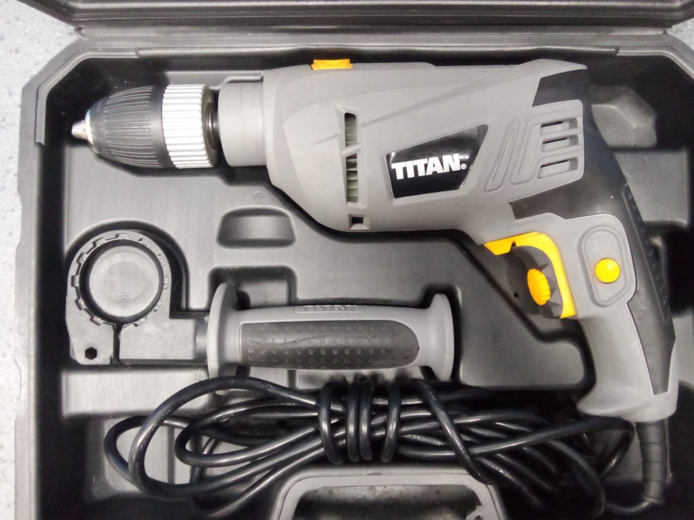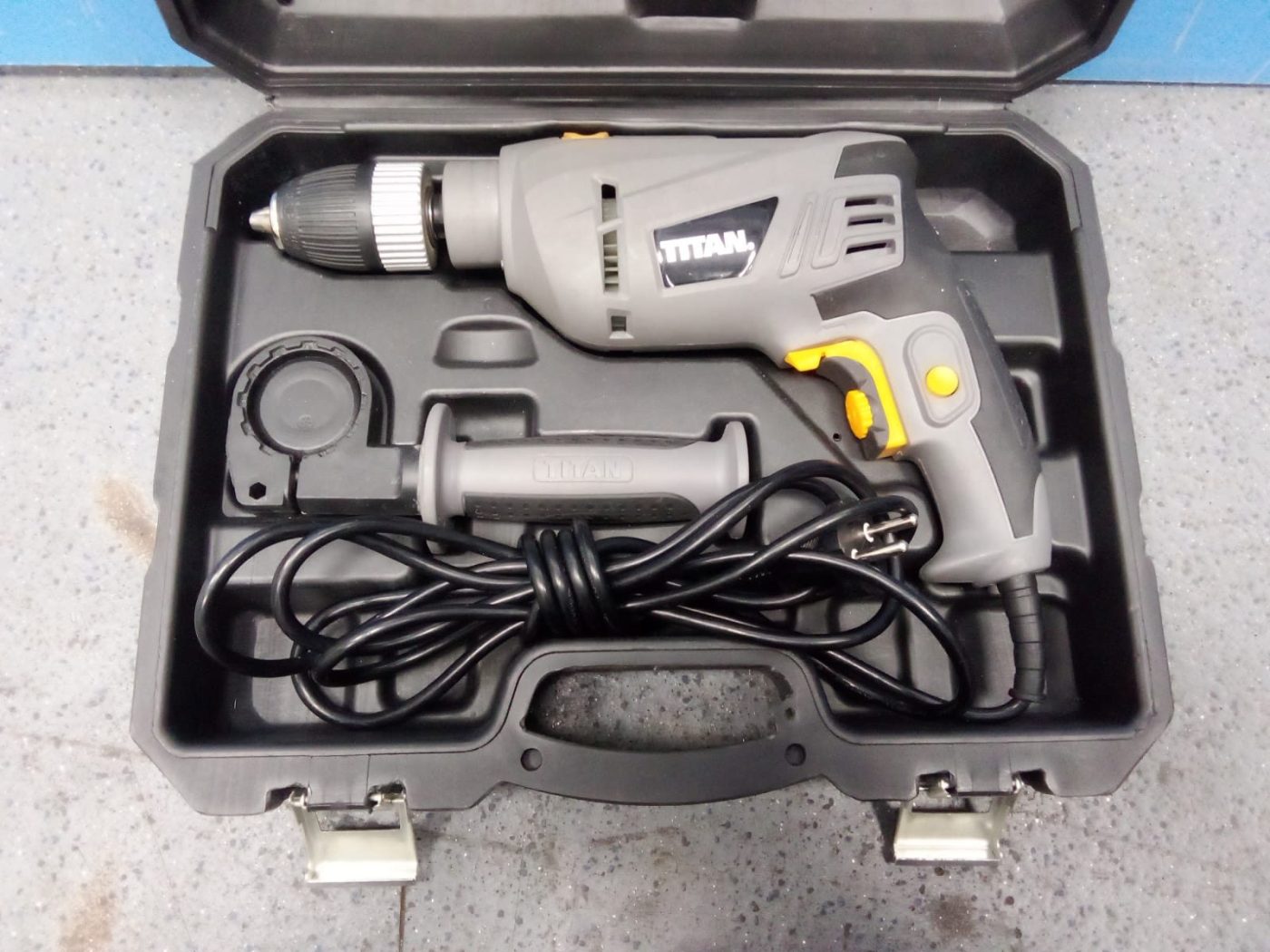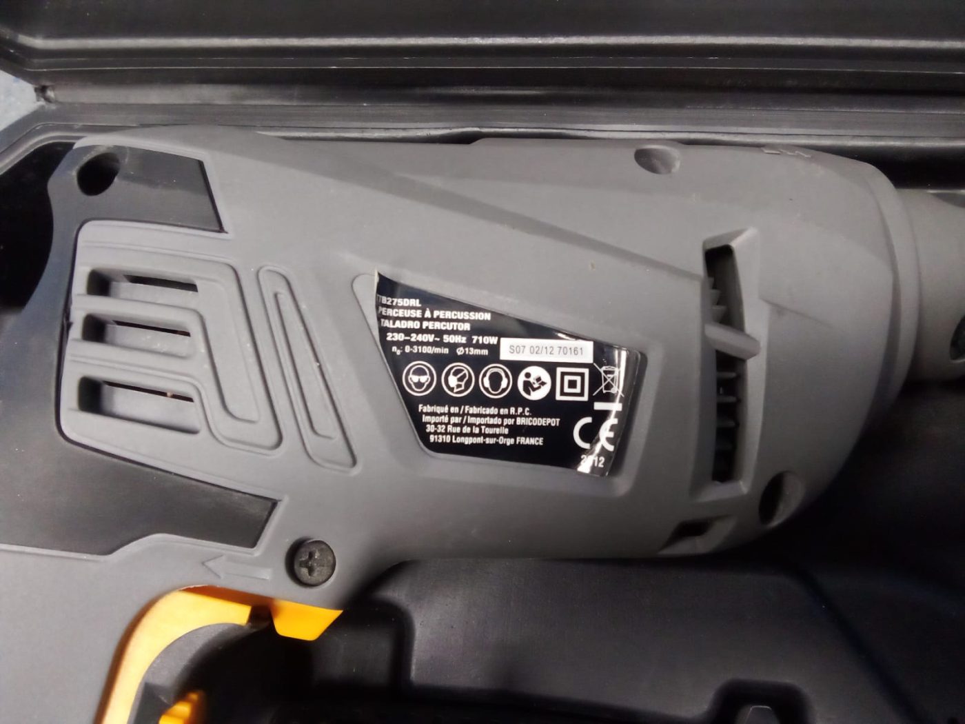 Taladro percutor 710 W (230-240 V) marca importación – modelo TB/TTB275DRL. Portabrocas hasta Ø 13 mm, funciona a red (sin batería), ideal para hormigón, ladrillo o madera. Poco uso, incluye empuñadura auxiliar y maleta original. En perfecto estado.
