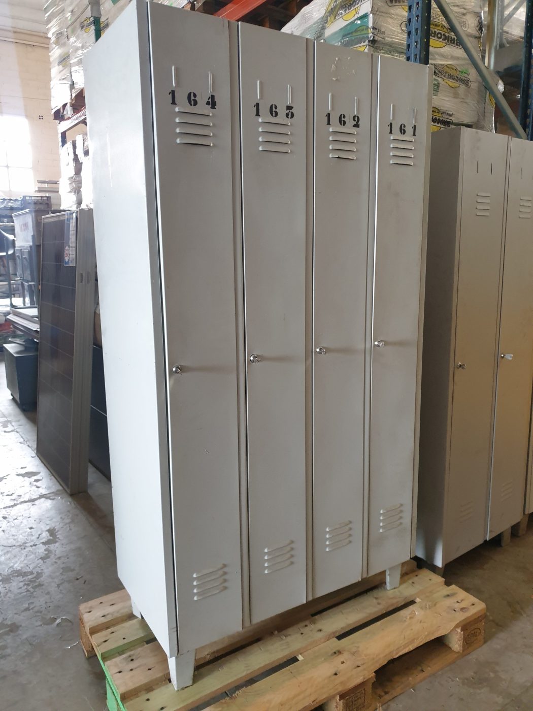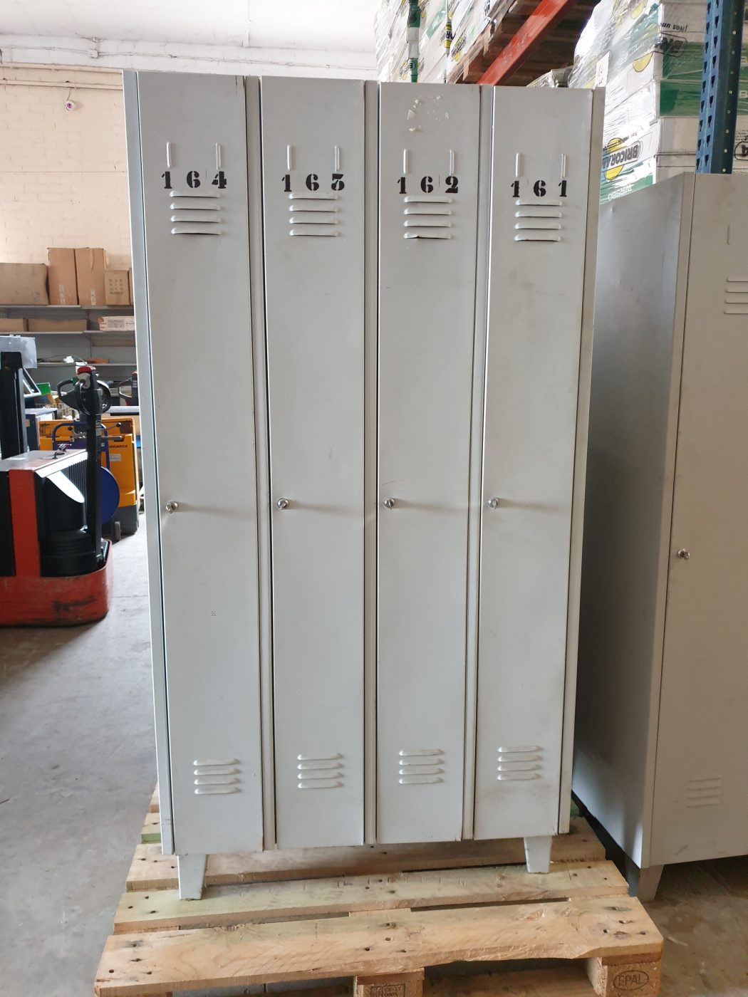 Taquilla metálica de vestuario fabricada en acero de alta resistencia, diseñada para entornos profesionales como industrias, almacenes, gimnasios, centros educativos y vestuarios corporativos. Su configuración de 4 puertas individuales permite el uso compartido optimizando el espacio disponible.