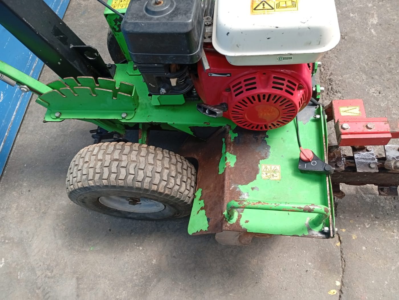 Máquina compacta y robusta, perfecta para la instalación de tuberías de riego, cableado eléctrico o drenajes. Gracias a su sistema de cadena con dientes, permite realizar cortes limpios y precisos en distintos tipos de terreno.